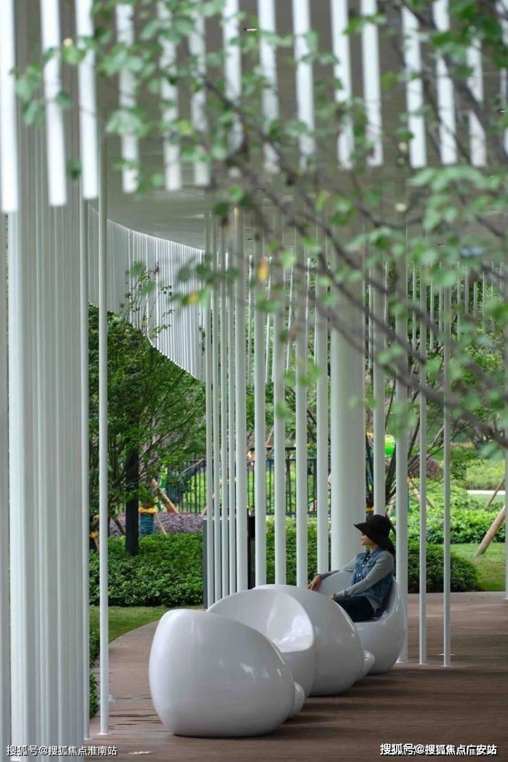 阳光中庭:简练的白色廊架模拟了鱼儿游动的姿态,与儿童活动区,阳光草坪结合,如同灵动的鱼儿在水中遨游,激起阵阵涟漪,整个园区因此变得生动活泼。树影与午后阳光相伴,时光在此刻慢了下来,休闲廊架之上,享受轻风与片刻的闲适,可爱的兔子陪你一起聊天,看云卷云舒,花开花落。