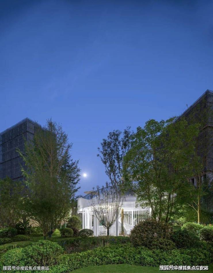 廊架整体以白色调为主,结合水韵的元素进行廊架错落有致的立柱设计,集现代,简约,大气的设计风格。整体廊架如同一尾越水而出的锦鲤,打破一汪镜水般的草地,带来不一般的动感韵律,卷起圈圈涟漪。傍晚的风很轻 ,和家人邻里手握饮料汇聚于此,把烦恼暂时放下, 煮茶品茗,自由闲谈,慢悠悠的看灯火通明,看月亮和星星眨着眼......