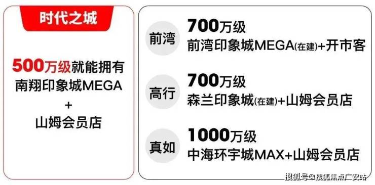 毋庸置疑,南翔就是外环外商业及居住环境的领军板块,500万级就能享700万、1000万级才有的配套,且时代之城对面就是山姆会员店,到印象城MEGA也在步行范围内,是项目步行配套。