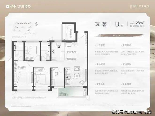 (「保利海上瑧悦」面积约99-128㎡3-4房,每一种户型设计,朝南大面宽的全明格局,直接大大提升室内的采光度与视觉的通透感。