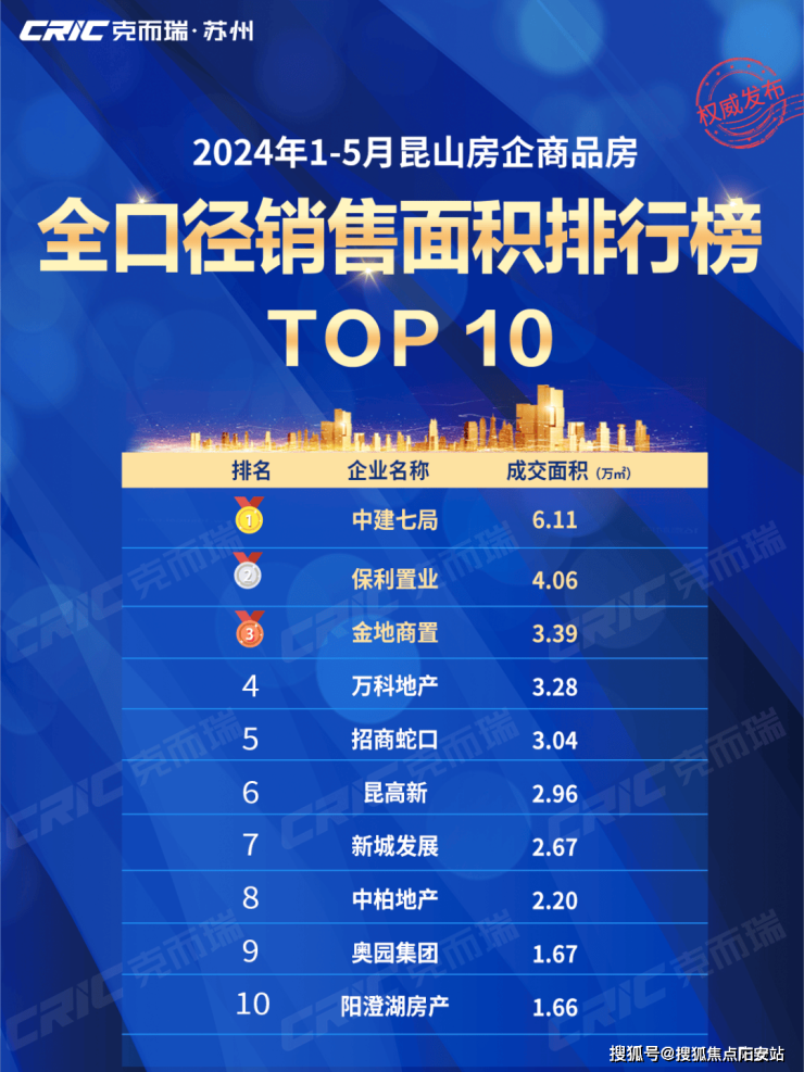 2024年1-5月,中建七局地产集团热势一路攀升,在昆山全口径销售金额榜、面积榜中,以12.47亿元、6.11万方的优异成绩蝉联双榜首,是当之无愧的第一!