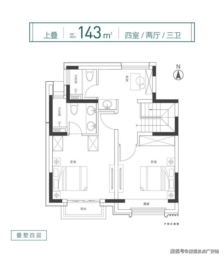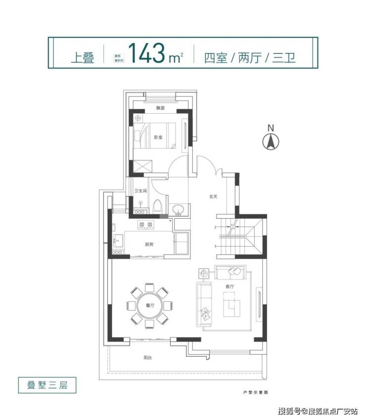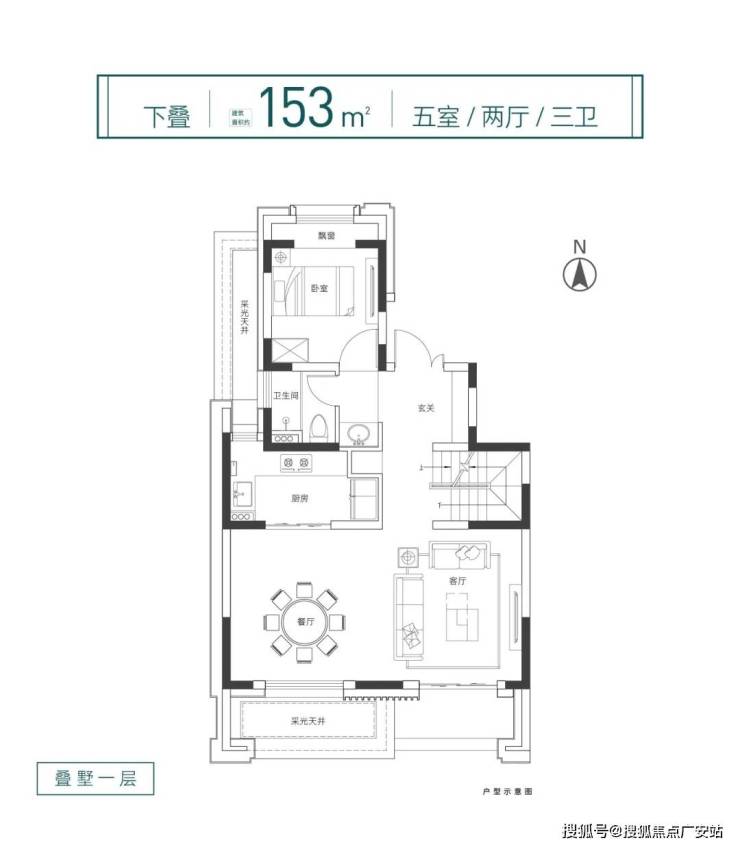 约143平4室2厅3卫上叠、约153平5室2厅3卫下叠,格局方正阔气,约7.3米大面宽双厅,尺度非凡,配合大面宽阳台设计,光线俱佳。