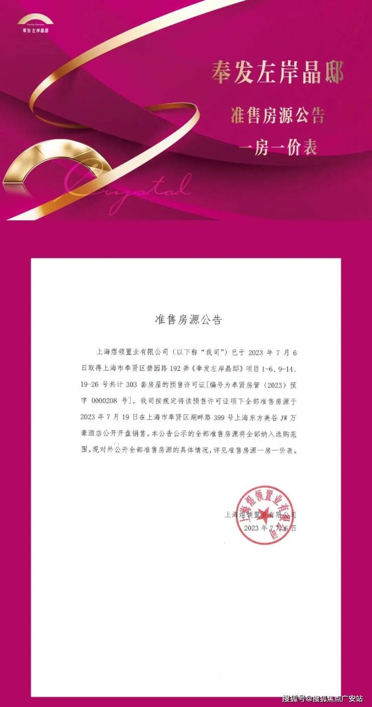 奉贤新城中央轴线,即将上市国企全新盘,奉发左岸晶邸,四大特点满足你的想象: