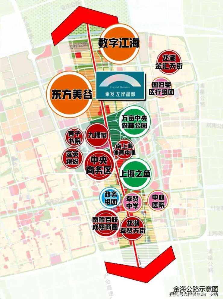 奉发左岸晶邸所在的金海公路,南北串联奉贤新城核心地标、繁华商业、生态名片、战略产业,当之无愧中央黄金发展轴线!