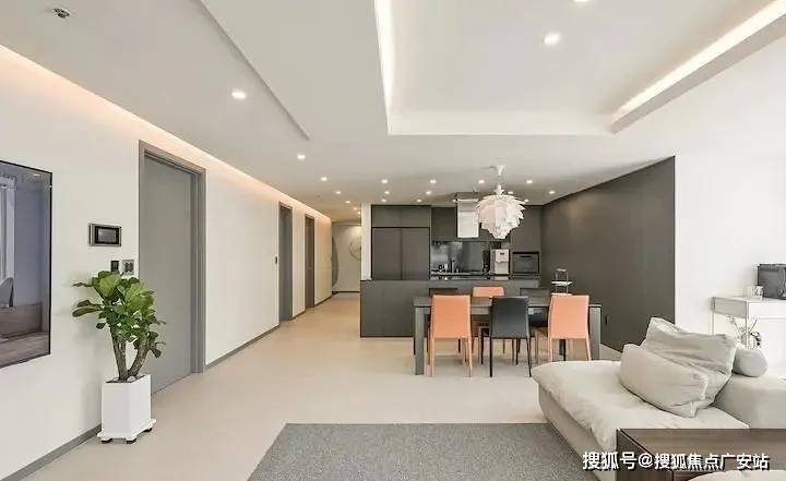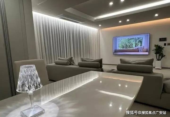 电视墙就比较简单了,大白墙耐看实用,不要电视柜后,整个空间也显得格外清爽,无主灯设计保证了室内的通透感,加上两面落地窗的采光,看着就亮堂堂的。