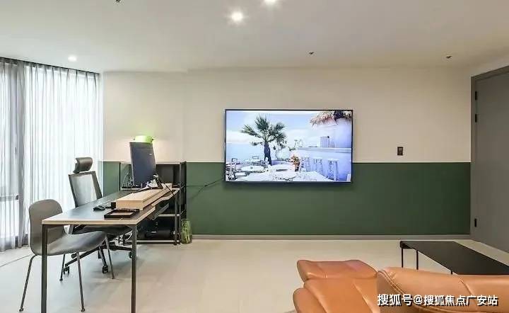 书房本身离玄关不远,是不规则的,为了避免空间浪费,并没有大肆铺张打柜子,而是因地制宜做调整,满足办公学习的同时,还兼顾了休闲。