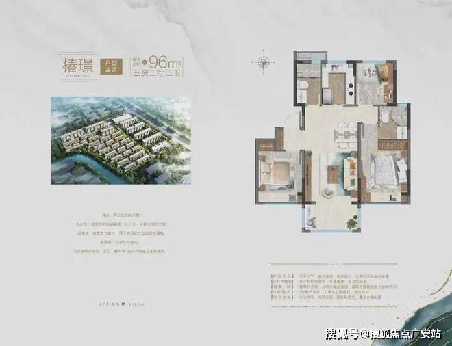 建面约96㎡的3房2厅2卫户型,完全是当下的经典款。