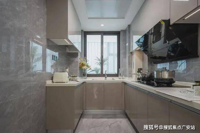 U型厨房设计操作动线合理,空间充足,烹调自如。