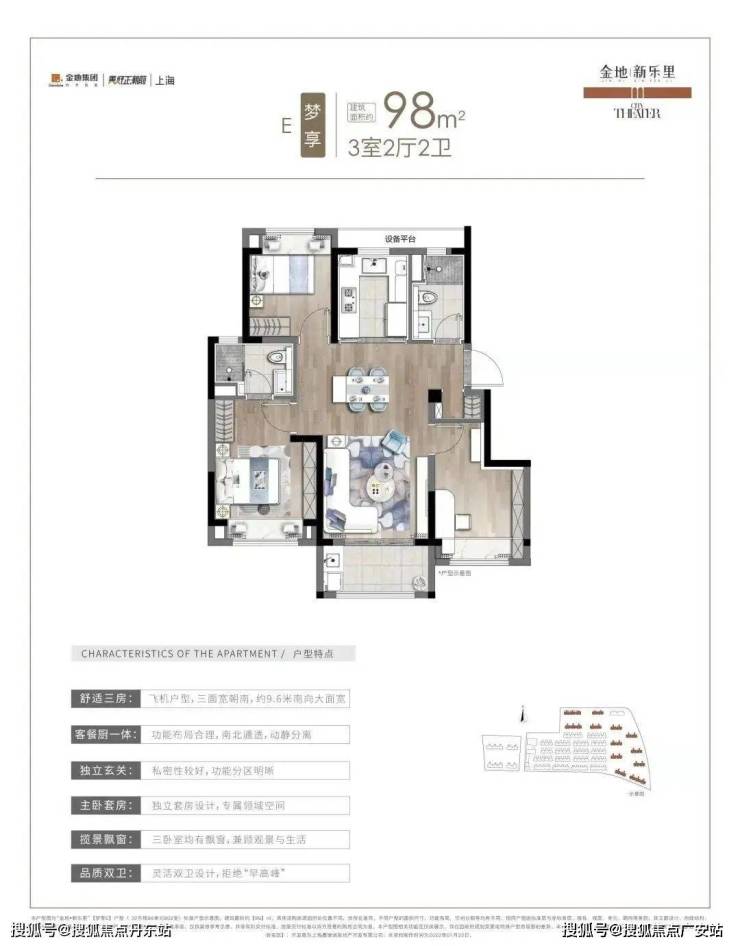金地新乐里预约热线:400-811-8224 ☎✅目前主力在售建筑面积约98㎡户型,总价约300万级!