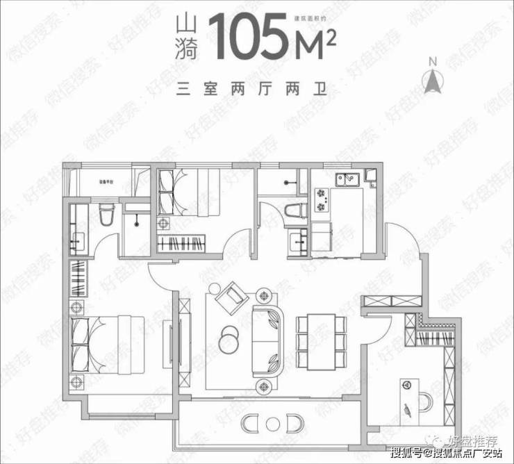 约105㎡户型同样实力不容小觑。受益于高得房率,约105㎡的空间呈现出了120㎡+的生活方式!