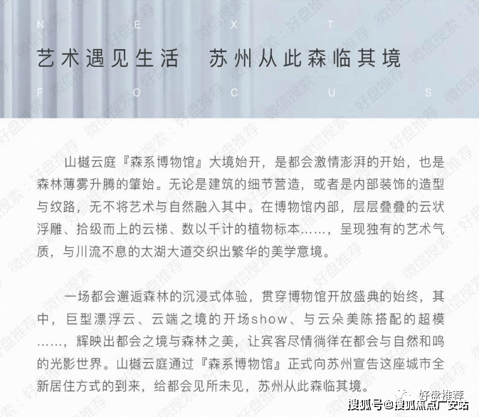 从“源承狮山、都会沉浸森林”发布盛典到“山中有朵雨做的云”苏州首个森系博物馆公开暨样板间正式开放,每次都是千人共鉴的盛况。