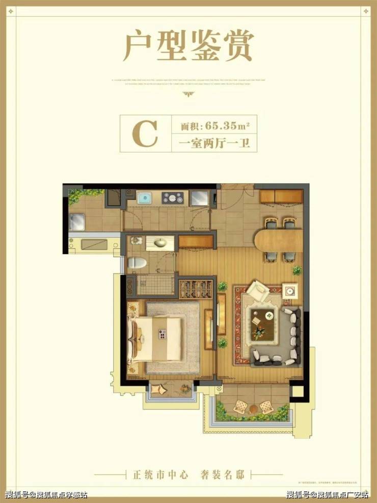 圣和静安公馆售楼处电话☎400_887_8824✔✔✔C户型:建筑面积约65.35㎡1房对比市区同面积的1房,我倒是觉得这个户型还可以。虽然非南北通透,但南向采光面较大,还配备较大面积的南向阳台,主卧也有飘窗,还有工作阳台,居住舒适度和尺度感都不错,适配单身贵族。
