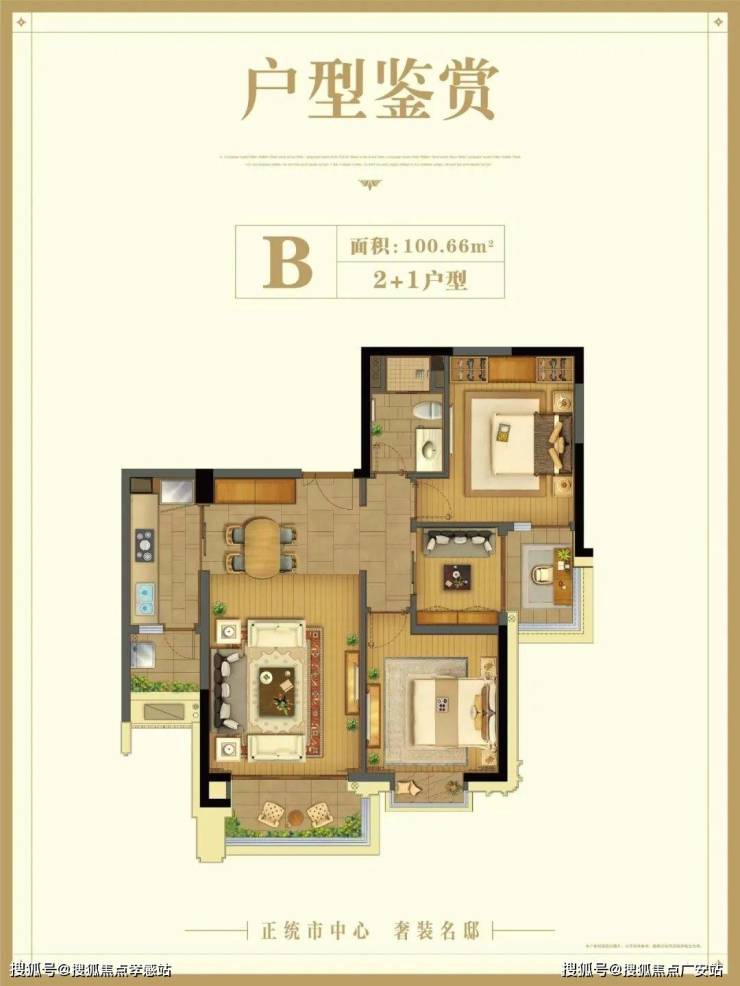 圣和静安公馆售楼处电话☎400_887_8824✔✔✔B户型:建筑面积约100.66㎡2+1户型南向采光面还是比较充足的,容纳下了工作阳台、景观阳台、1个卧室和小书房,日常的采光和景观视野还不错。可惜非南北通透,通风效果欠佳。另外小房间面积较小,做卧室较为勉强。