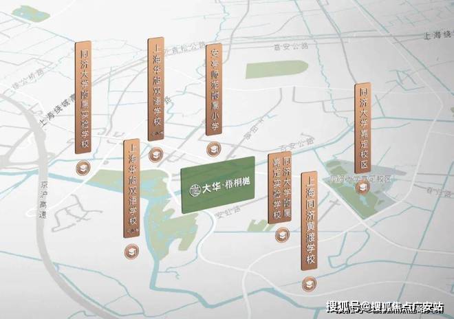 大华梧桐樾北侧不远处,就是9年制同济大学附属嘉定实验学校.不远处还有东方瑞仕幼儿园,同济大学(嘉定校区).华师大附属双语学校,是嘉定区K-12(幼儿园、小学、初中、高中)双语学校,含金量高!让周边的发展前景值得期待.