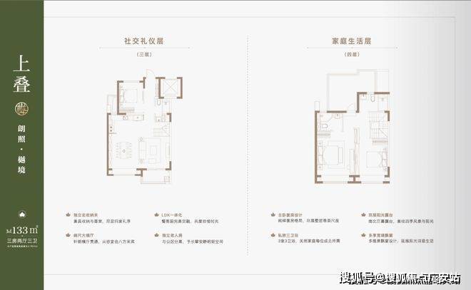 有更大尺度的改善需求可以选择项目的叠墅.叠墅产品分为4F、6F层叠加,主力产品建面约约122-133㎡上叠,132㎡大平层,131-145㎡下叠.