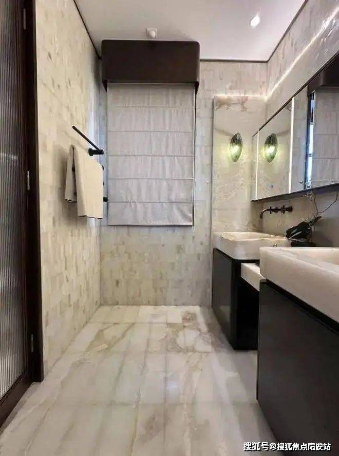 里这第二个卫浴空间,更接近于享受级.嵌入式浴缸,设计了魔镜系统,可以供业主泡澡时观影娱乐;除此之外,这个卫生间也有独立的淋浴房,并设计有桑拿房.