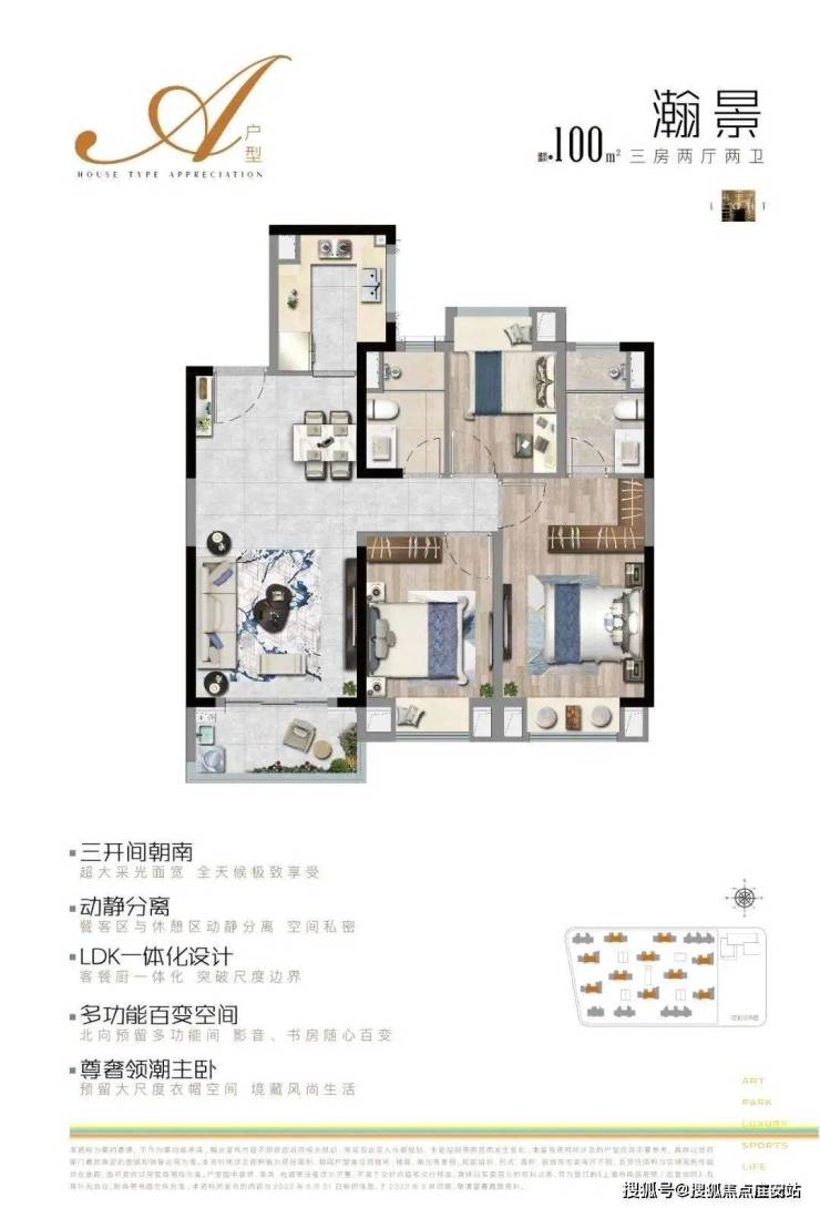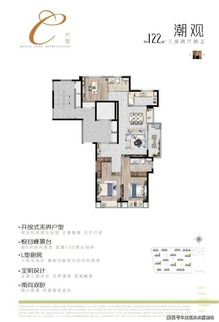 主力户型:有 100㎡、120㎡、122㎡的 3 居室。