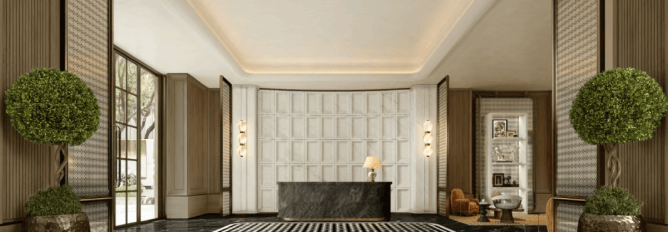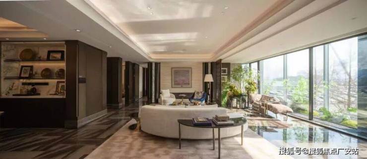 归家大堂层高约6米,融合传统门庭规制与现代酒店仪式,营造极具尊贵感的归家体验。