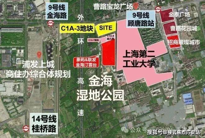 联发曹路项目南侧是象屿联发・金海汀云台,房地联动价6.3万元/㎡,次次触发积分,五开五罄,去化速度快。两宗地块容积率、限高一致,且均在金海湿地公园东侧。