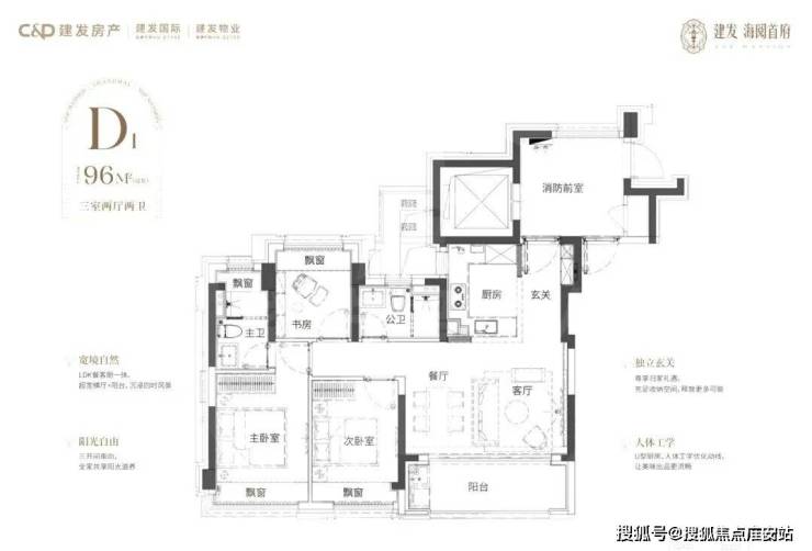 这套建面约103㎡动静分离户型打破常规,兼具三个房间和南向超阔面宽的横厅,以此承载从二人世界到三代同堂的全生命周期需求。
