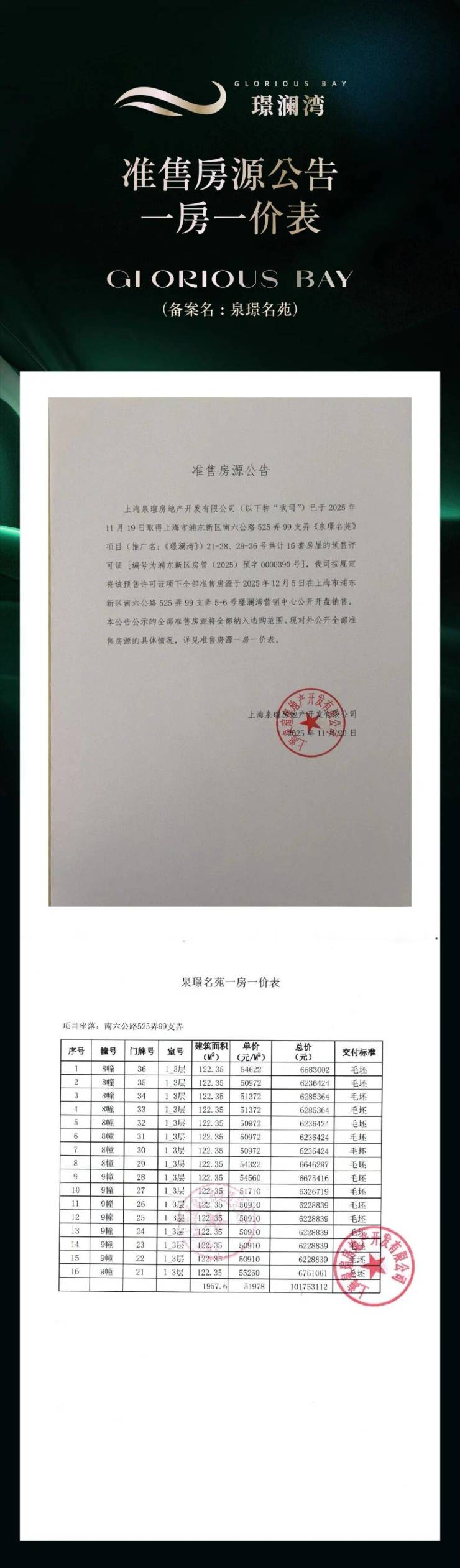 开发商:上海泉瑄房地产开发有限公司(上海泉山房地产);备案名:泉璟名苑