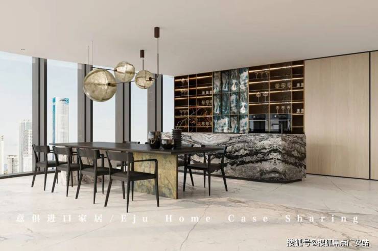 开放式中西餐厅是天然的派对厅,光影与风景延至室内,餐厅亦可无遮挡瞰江,餐厅围坐,共享家族阖乐,宴飨宾朋,社交聚会从容优雅,别人的向往,是此处的日常。