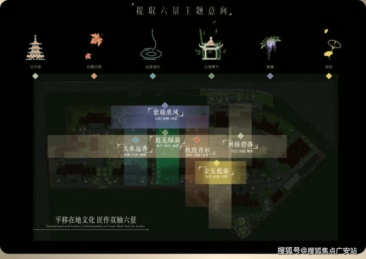 项目园林对轴线的运用同样出彩,堪称神来之笔的“双轴六境”,由“礼序归家轴+景观漫步轴”纵横交织,融在地文化,以“非遗”竹编形制,铺陈园林步道,同步淬取“州桥壁落”、“紫藤熏风”、“天水远香”等嘉定古今6景,提炼细节元素及专属色系,营造主题园林空间。