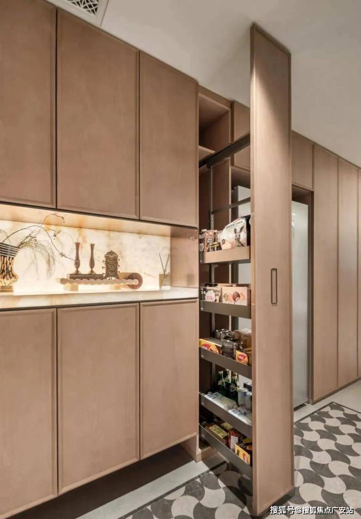 厨房更是堪称美食达人的天堂,集成一系列多功能调味拉篮、定制谷物抽屉等,收纳有序,油盐酱醋间的分类放置烦恼一次性得到解决,琐碎繁杂不再。