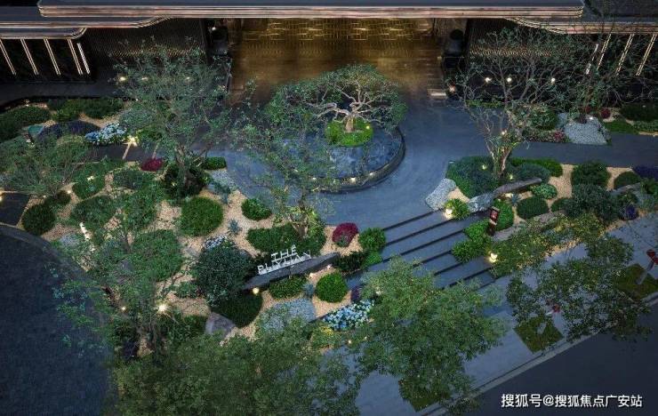 金茂·璞元项目将在整层抬板技术、内外双庭景观系统等方面进行创新。将地块抬高约1.4m,由安哥拉黑原石堆砌而成的门庭入门台阶,自然分离街区和社区,划清了街区喧闹嘈杂。