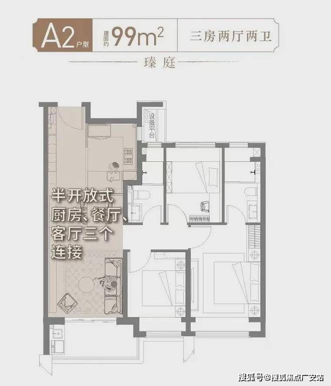 细节一:99㎡户型开放设计,核心区利用率MAX!