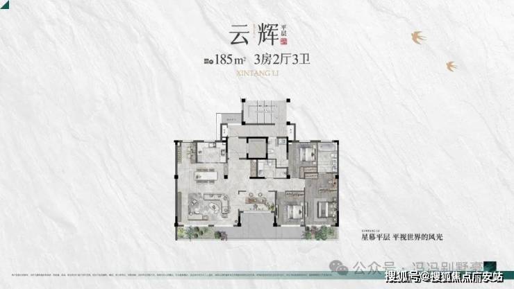 ·建筑面积约为184.54㎡3房2厅3卫的户型,此户型都采用了一梯一户的专属设计,私密性及舒适性极高。