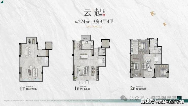 户型面积:平层185㎡,上叠208㎡,下叠224㎡