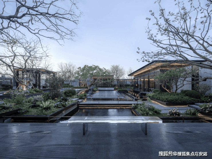 打造长约200米、近1000㎡水系景观,贯穿入口、庭院、归家轴线和景观主轴,采用五重造水形态,可行、可望、可游、可居,正是中式园林所追求的空间意境.