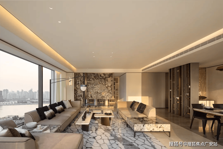 同时,项目凭其无束的尺度设计,3.15-3.3米层高塑造出开阔的视觉效果,社区景观与山林景观以“借景”和“框景”的方式,被容纳于室内,让抽象的空间被感知,尽情铺展主人的诗意,盛迎每一天的美好生活。