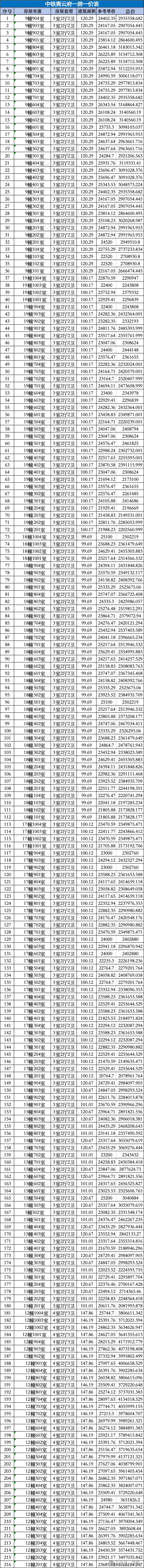 一房一价表如下,建议收藏