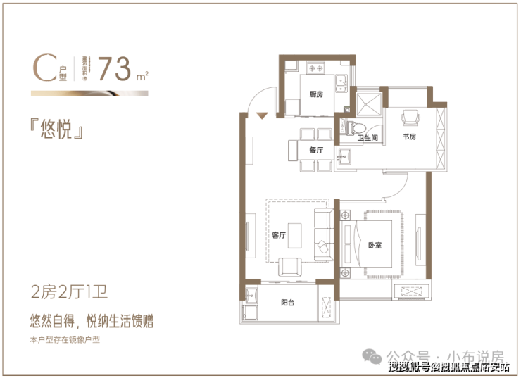 建面约73㎡悠然两房:悦纳生活馈赠