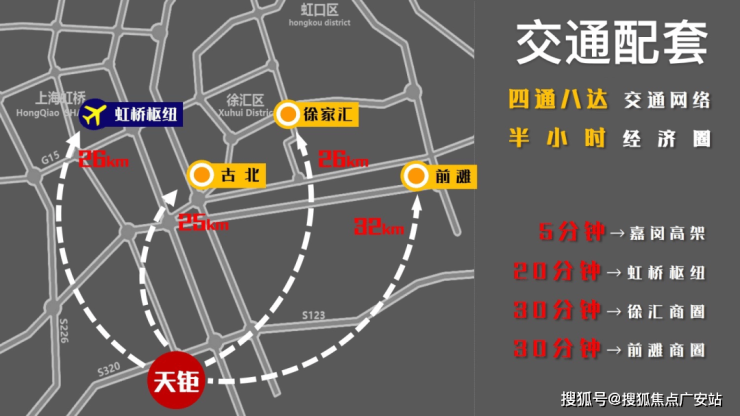 自驾方面主要是项目旁边边的剑川路,申嘉湖高速(40分钟直通浦东国际机场),虹梅南路高架(30分钟连接市中心)、沪金高速、沪闵路、嘉闵高架(25分钟直达虹桥交通枢纽)。