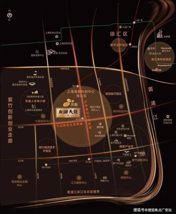 【龙湖·天钜】项目位于闵行南板块剑川路核心商务区,徐汇南板块,剑川路核心商务区,紫竹创新创业走廊核心地,区域坐拥两大国家级的产业园区闵行经济开发区和紫竹高新技术开发区;其中闵行开发区以机电产业为主导,紫竹高新区则以航空、软件科技及新能源为支柱产业,两大园区每年的生产总值近2000亿,是徐汇南持续发展的重要支撑;