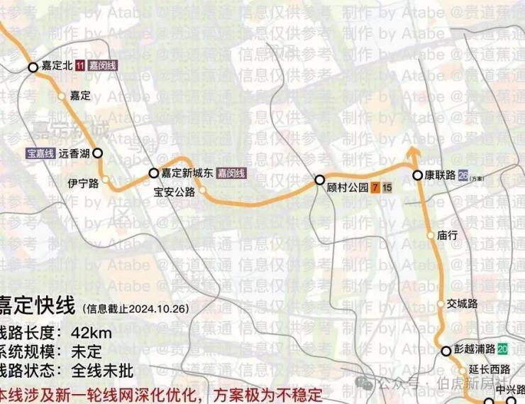项目距离11号线嘉定新城站直线约1.7公里,算不上地铁房,但有望通过宝嘉线+嘉定快线(研究)改变这一现状,下图为可能规划中的站点