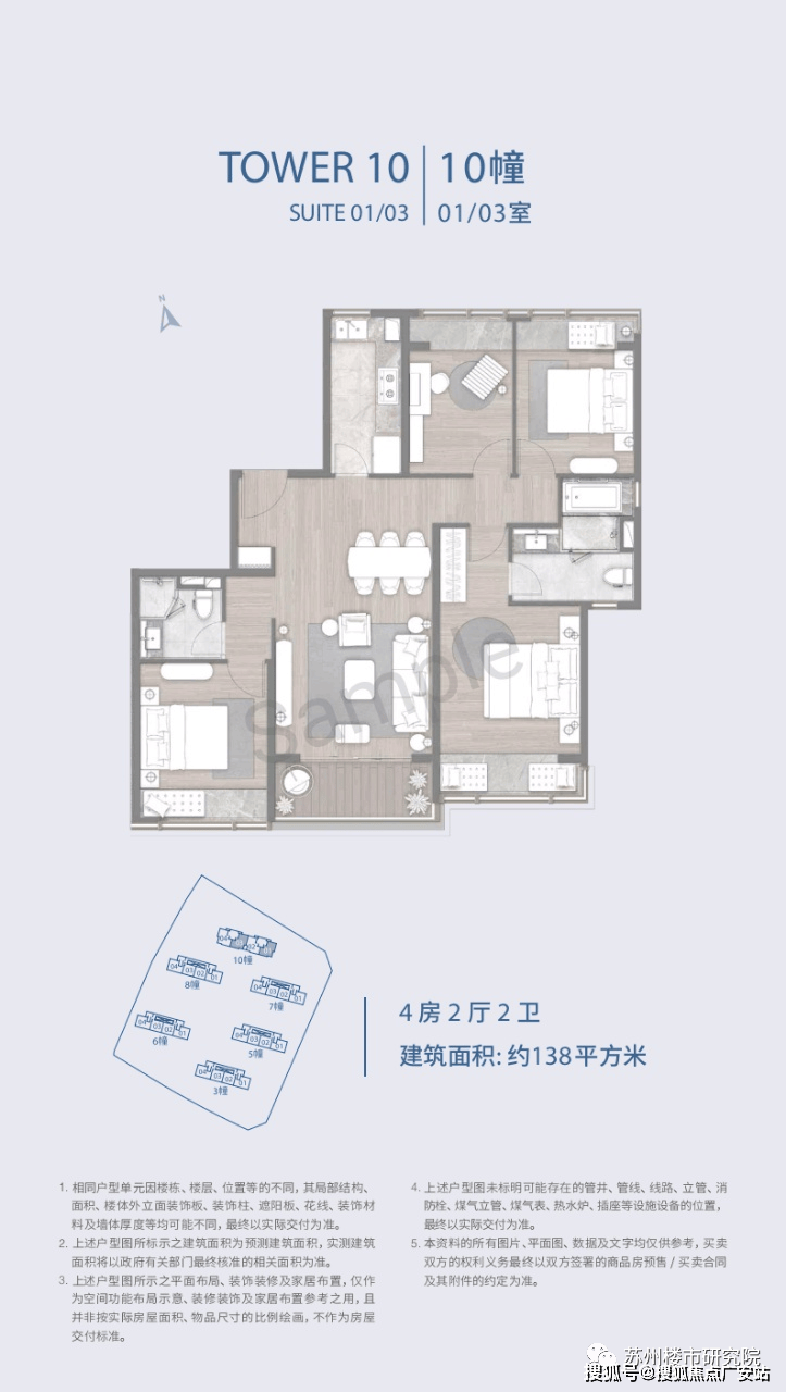 138平得房率为75.06%(建筑面积138.85平,套内面积104.22平)