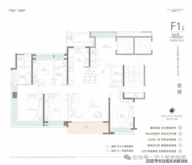 建筑面积约165 m²海派雅奢家,南向景观阳台,空间通透感被全面释放,承载内心的诗与远方;LDKB阔绰客厅,超尺度家庭中央生活区,营造N种居家场景;全屋MAX收纳,六大情绪收纳场景体系,创造更多生活场景与想象;270°全景飘窗,大屏生活,彰显主人尊贵身份,奢定生活优雅;星级酒店式主卧,独立卫浴,轻奢浴缸,让居者享受酒店般雅奢体验。