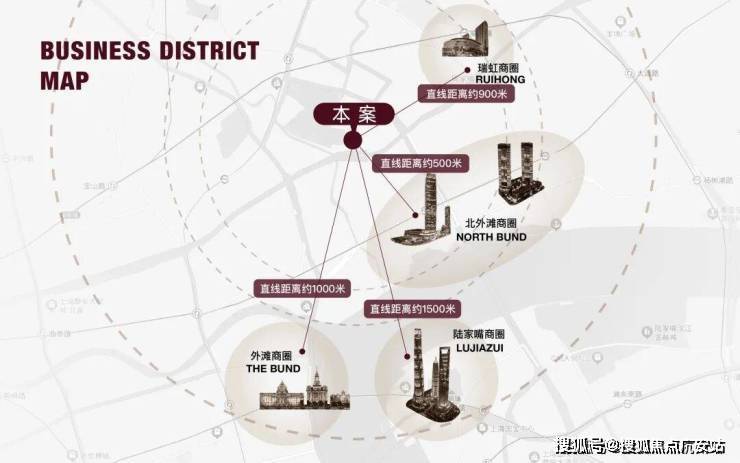 位置:外滩 / 北外滩 / 陆家嘴黄金三角,距黄浦江仅200-300 米