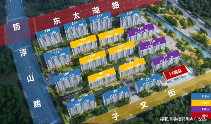 户型设计:主力户型115-152㎡三至四房,115㎡户型采用5.5米宽厅+2米进深阳台,152㎡户型南北双阳台设计