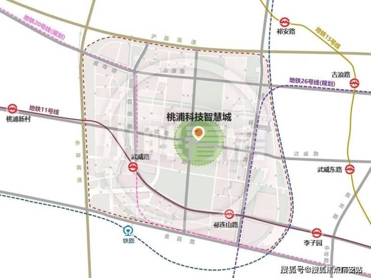 地铁方面,区域内已经有了11号线和15号线。规划的26号线地铁线在桃浦智创城范围内沿祁连山路也将设立站点。
