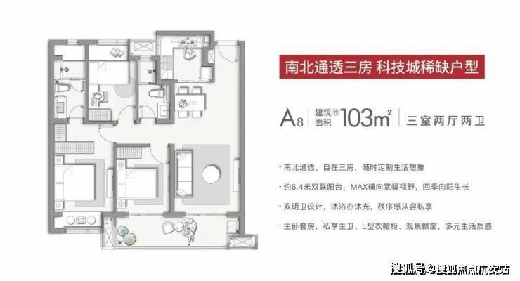 【建筑面积约103㎡三室两厅两卫】