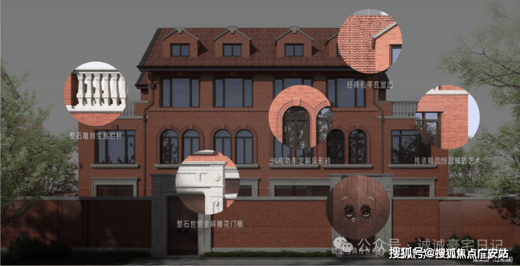 同款砖艺与屋面瓦材,随处可见天然石材整石雕刻工艺,新一代玖里系水岸风貌作品