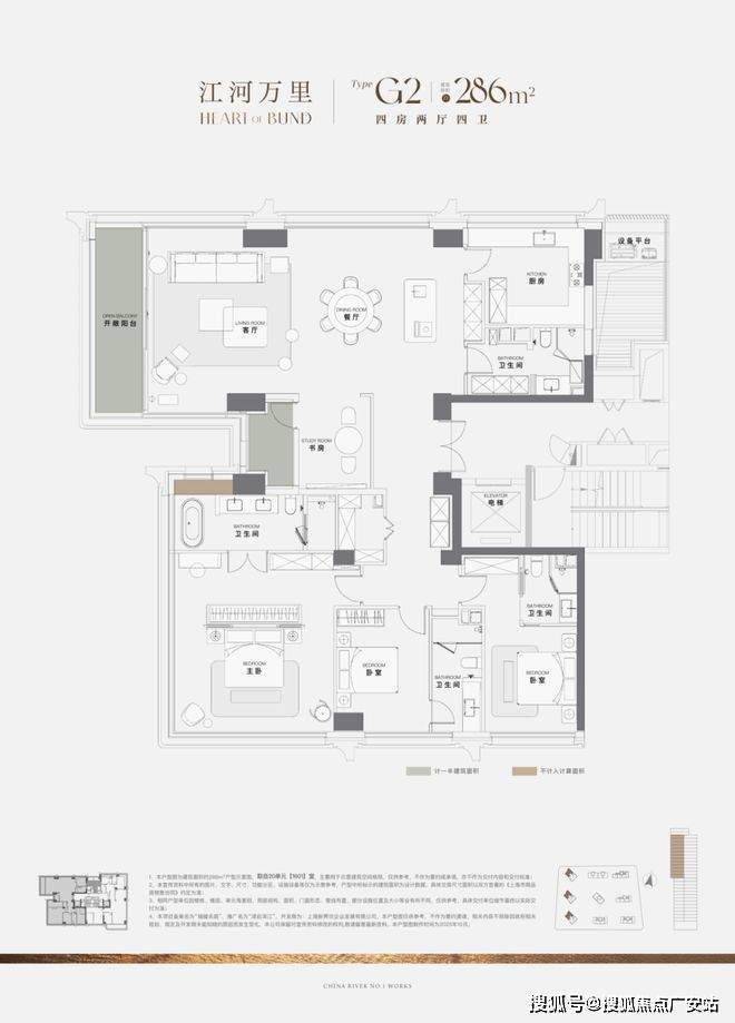 286㎡四房三卫(楼王户型,全景江景)