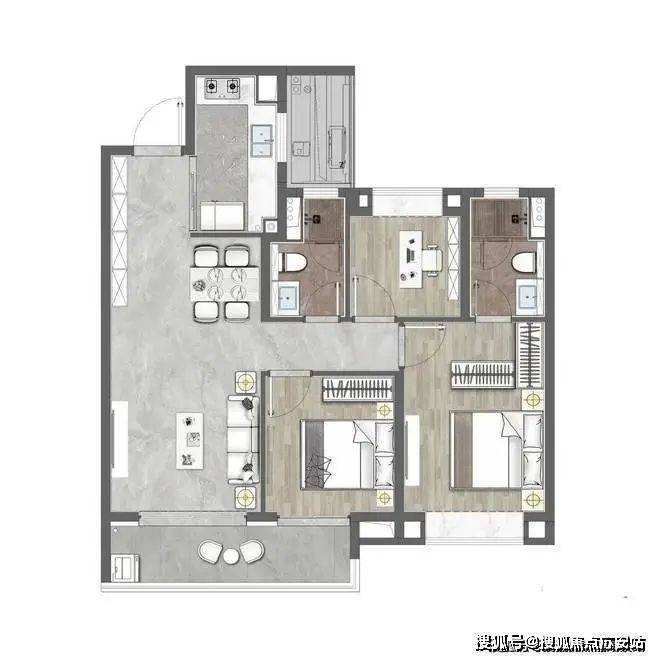 该户型能满足业主从二人世界到一家三口,再到二胎家庭的全生命周期需求
