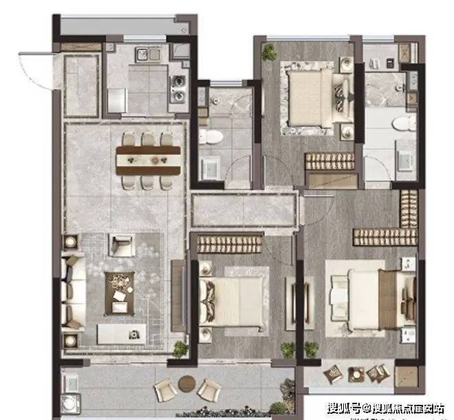 291、家配图:在墨线图的基础上配置上家具的平面效果表现图。