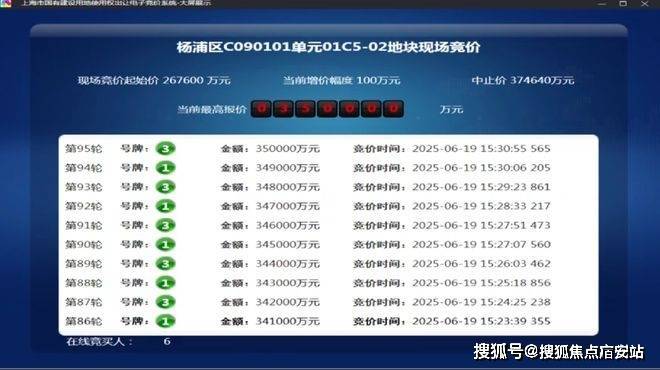 6月19日,2025年五批次土拍,保利发展经过95轮竞价摘得杨浦东外滩01C5-02地块(即保利外滩曜),成交总价350000万元,楼板价95530元/㎡,溢价率30.79%。